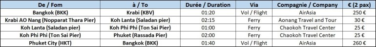 Nous avons visité Krabi, Koh Lanta, Phi Phi, Phuket, et Bangkok. Notre circuit a été comme suit :