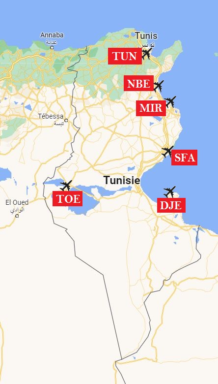 La Tunisie est bien desservie vers ses principaux aéroports :