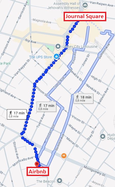 We start by walking to the Journal Square station to take the PATH train to New York.