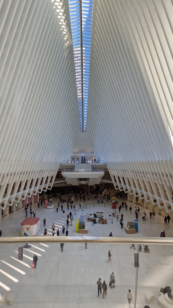 Nous prenons le PATH pour arriver au World Trade Center. Nous arrivons dans le magnifique Oculus Center. Oculus est la nouvelle gare futuriste construite au World Trade Center