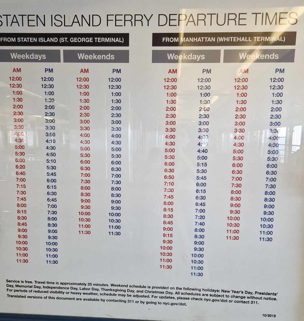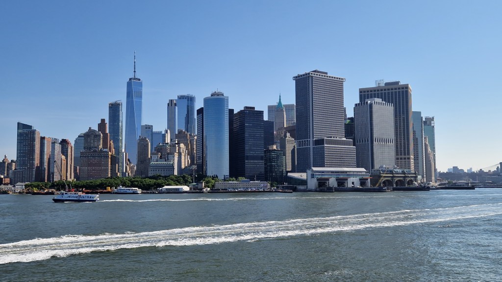 Le trajet dure 25 minutes et permet de passer à proximité de la Statue de la Liberté et d’avoir une belle vue sue la Skyline de Manhattan. Cette solution ne permet pas d’accéder à Liberty Island mais cela peut être une bonne solution gratuite et rapide, car pour la première solution, il faut prévoir une demi-journée.